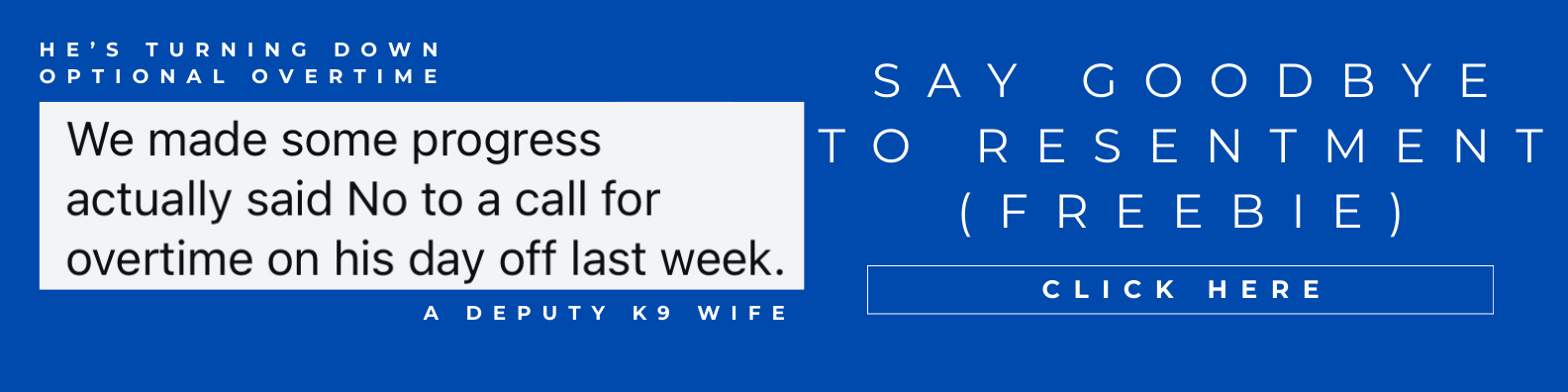 I can help you with getting rid of resentment in my new police wife coaching program (open to girlfriends too!). It includes 6 weeks of weekly pre-recorded videos, printable handouts to reflect on what you learned in the videos, and group live coaching sessions to address your unique needs together.